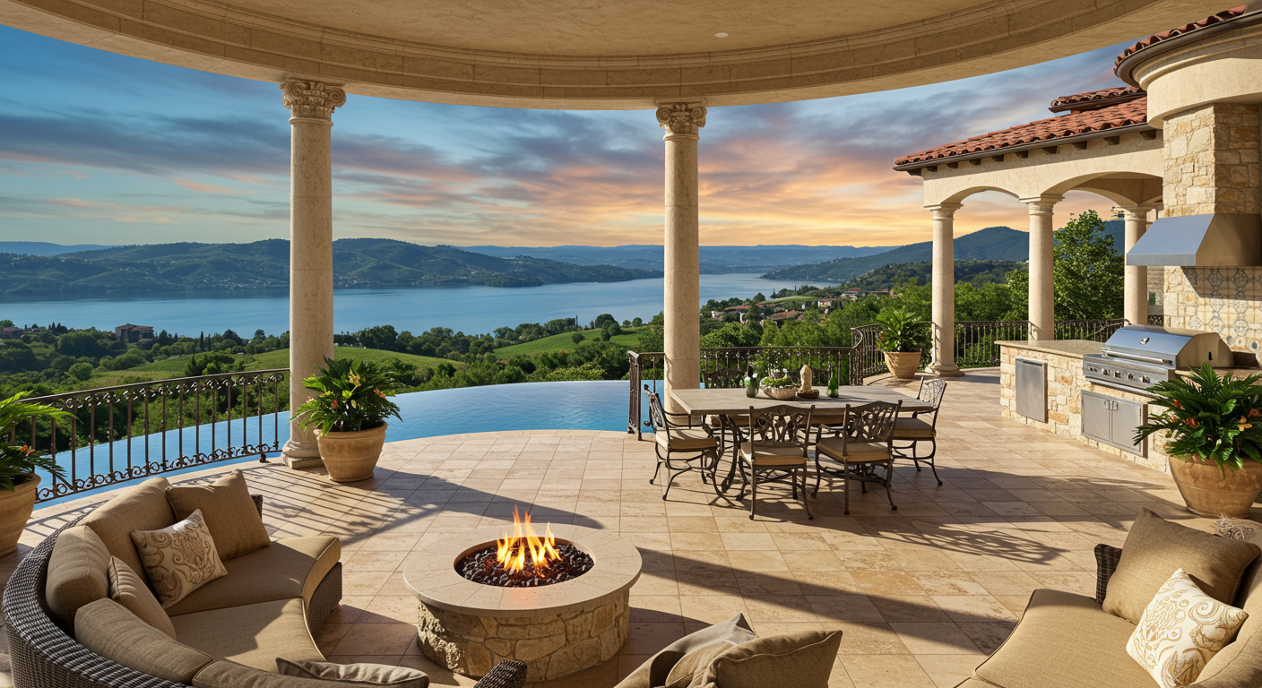 Showcasing unobstructed views of Lake Travis, this magnificent estate is situated on 25+ hillside acres of south shore lakefront property. Extensive patio and balcony space spans the length of the main house making it an ideal venue for springtime soirees and dining al fresco. A pavilion boasting a fireplace, two bars and two baths is the perfect excuse to grab a glass of wine and enjoy captivating Texas sunsets in the evenings.