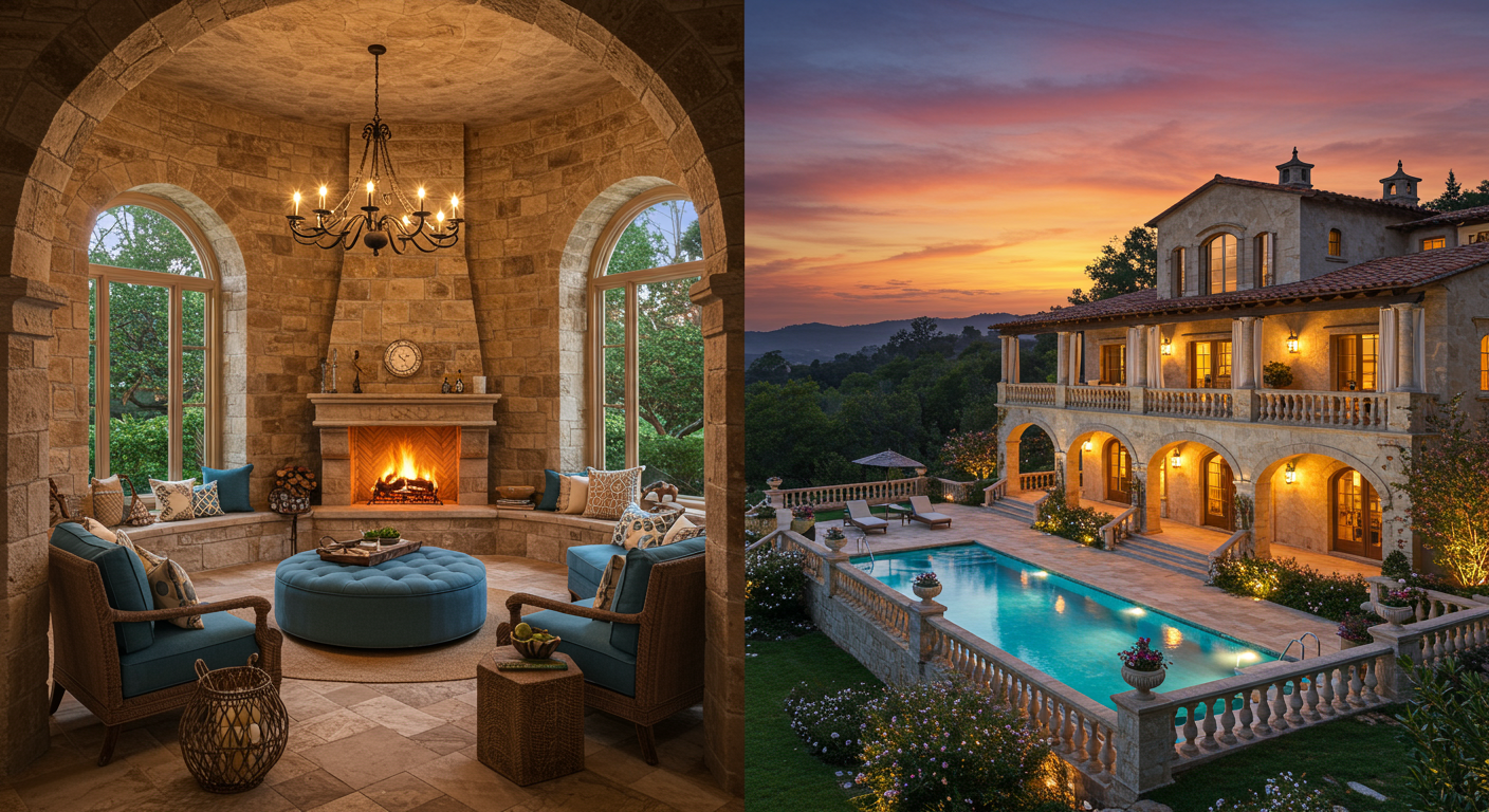 This stunning estate patterned after the “Mani Castles” of Southern Greece features amazing downtown views and an incredible outdoor space. Complete with an expansive pool, stone gazebo with fireplace, and two balconies, you can enjoy a view of the surrounding wooded hills or bustling city.