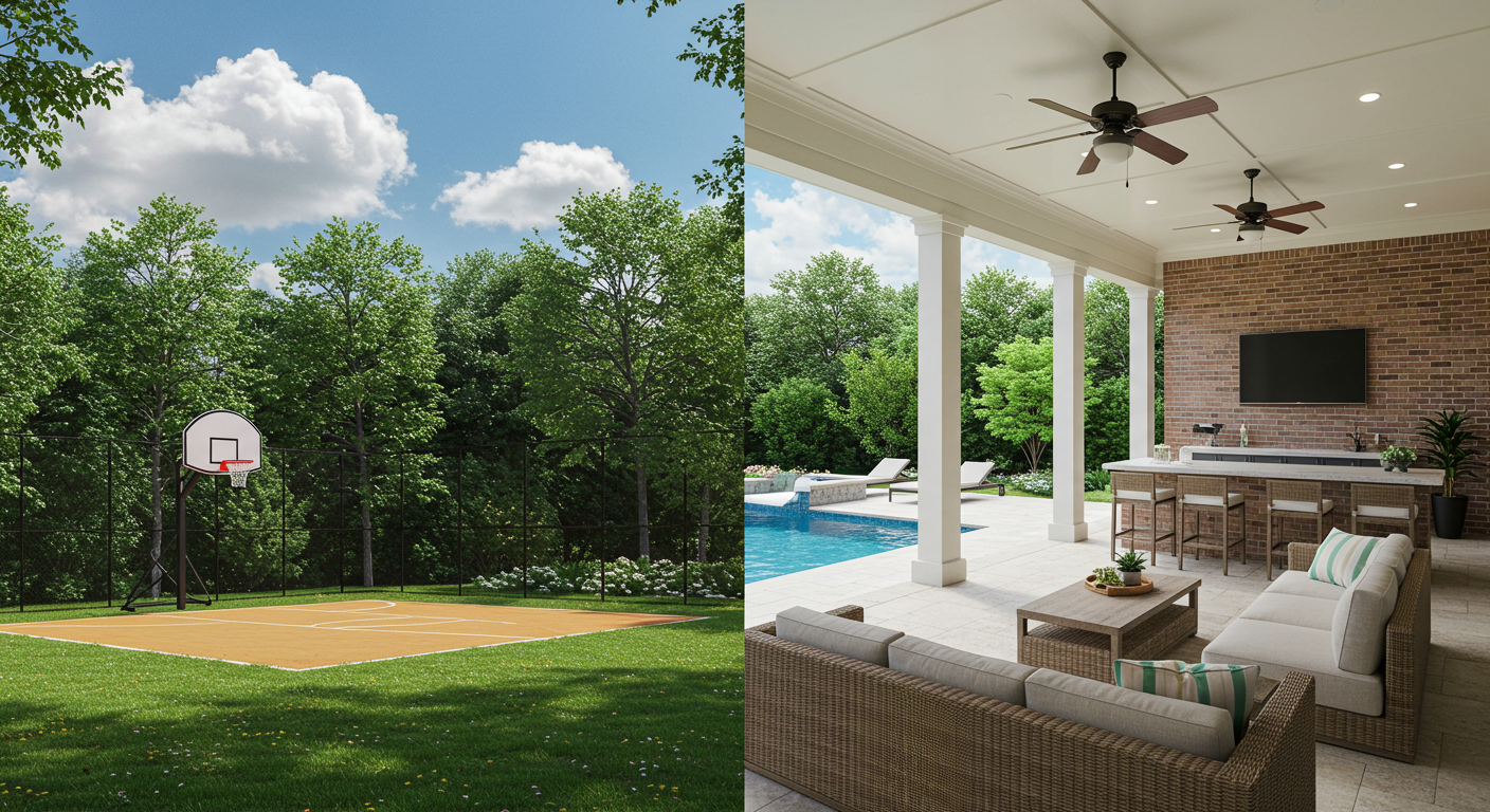 This classic Chicago-brick home situated on just over an acre boasts an envious outdoor living space. Backyard barbecues and birthday parties are a must with the covered patio, outdoor Lynx cooking system with bar seating, sparkling pool and spa. Relax to the sound of a spring-fed creek on the multi-tiered and beautifully terraced yard or enjoy some friendly competition on the full-size sports court and bocce ball court.