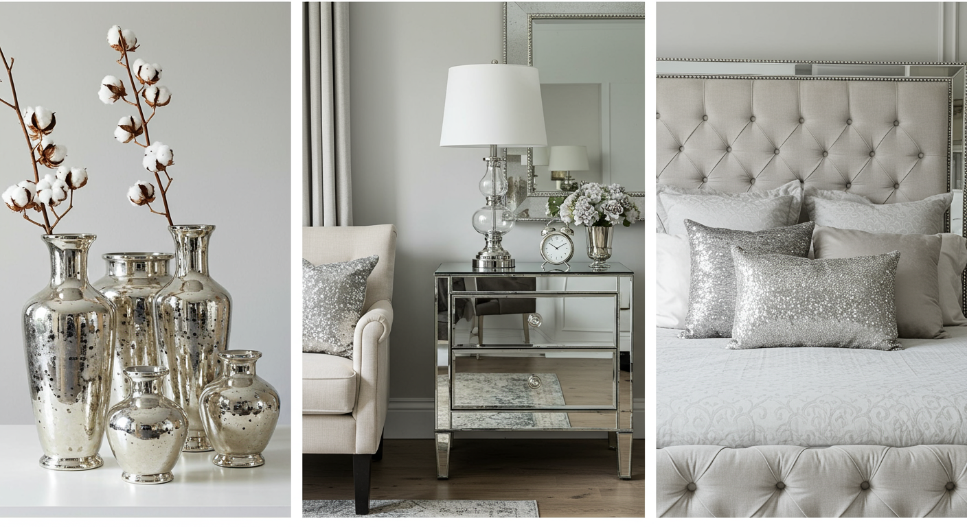2 - This Hollywood-style mirrored nightstand with a silver lacquered edge and crosshatch details add light, sparkle and luxury to any bedroom space.