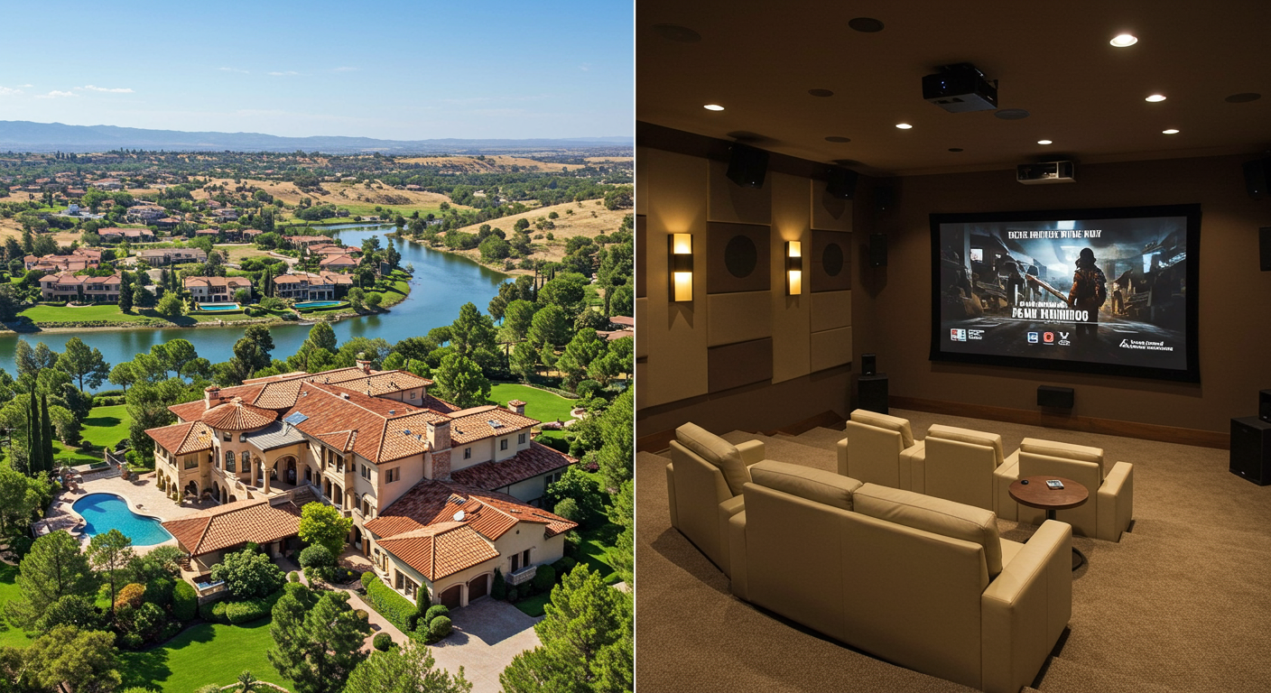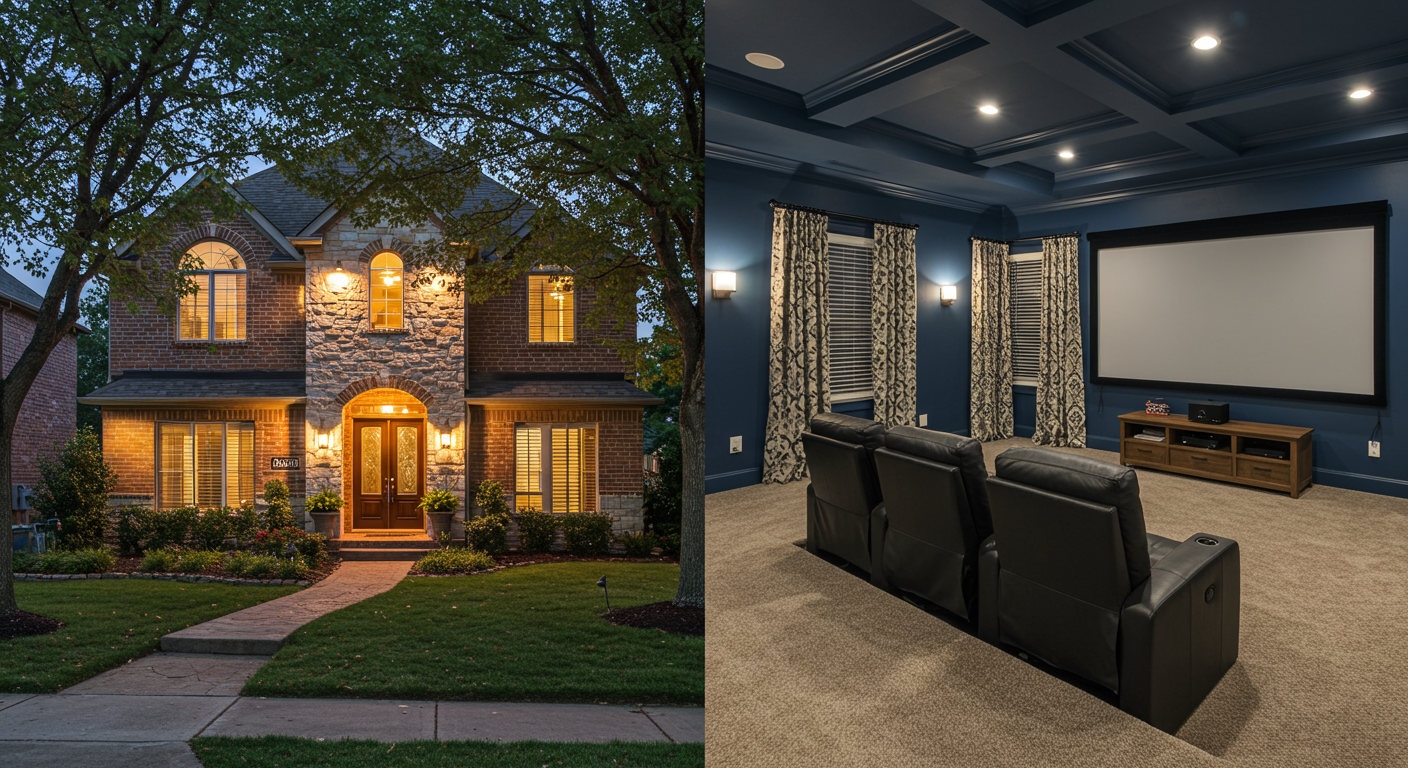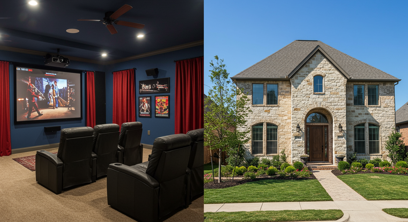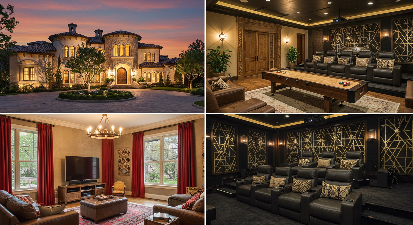 This stunning four-bedroom home features an open floor plan and a fully-equipped media room with room to entertain.