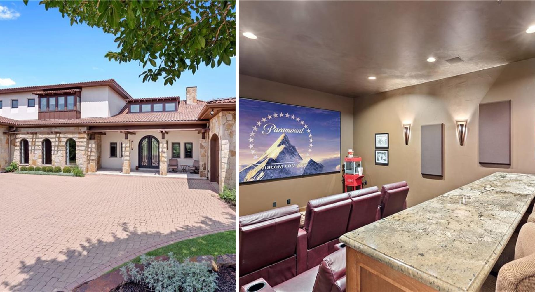 This gorgeous Hill Country home offers a spectacular backyard oasis and a theatre-like media room complete with projector mount, 108-inch screen, and stadium seating.
