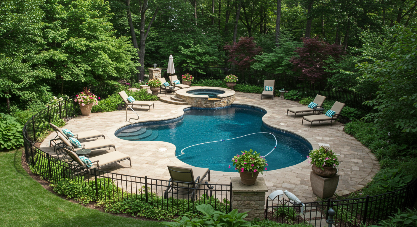 Once cooled off, move to the spa for some warm water therapy or retreat to one of the many lounging and tanning areas. With the generous mature trees scattered throughout the yard, it is even easy to find areas in the shade to lay out.